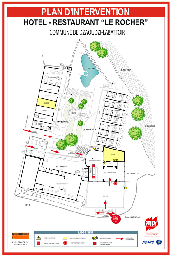 Ils doivent être affichés à proximité des escaliers, ascenseurs ou à tout autre endroit visible mais aussi à chaque niveau (sous-sol, rez-de-chaussée, étage...).